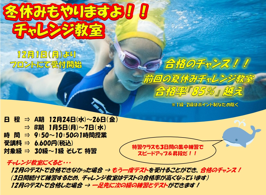 ☆冬休みチャレンジ教室☆ ※申込書はこちらから