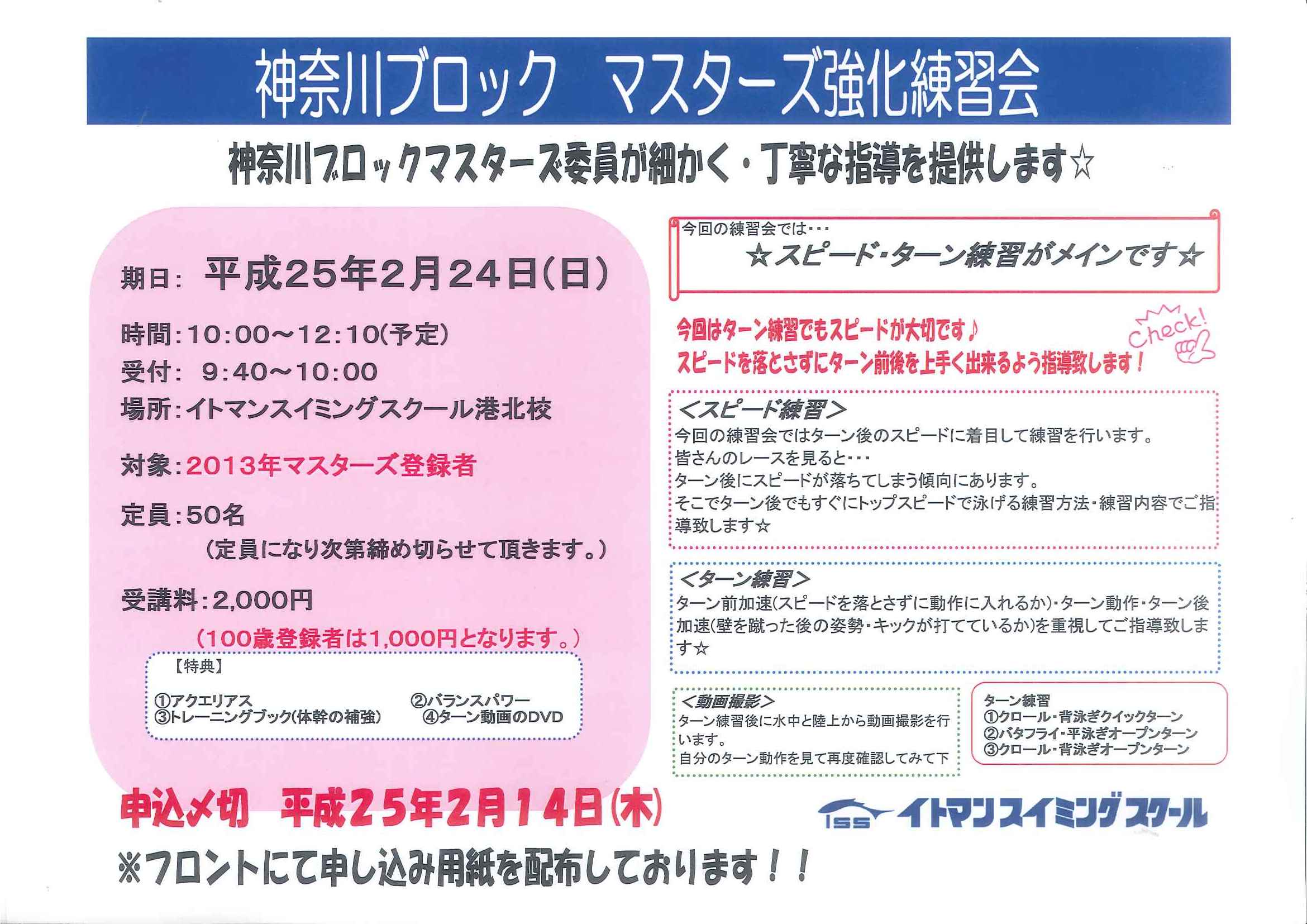 ★マスターズクラス 第1回神奈川ブロック マスターズ強化練習会のお知らせ★