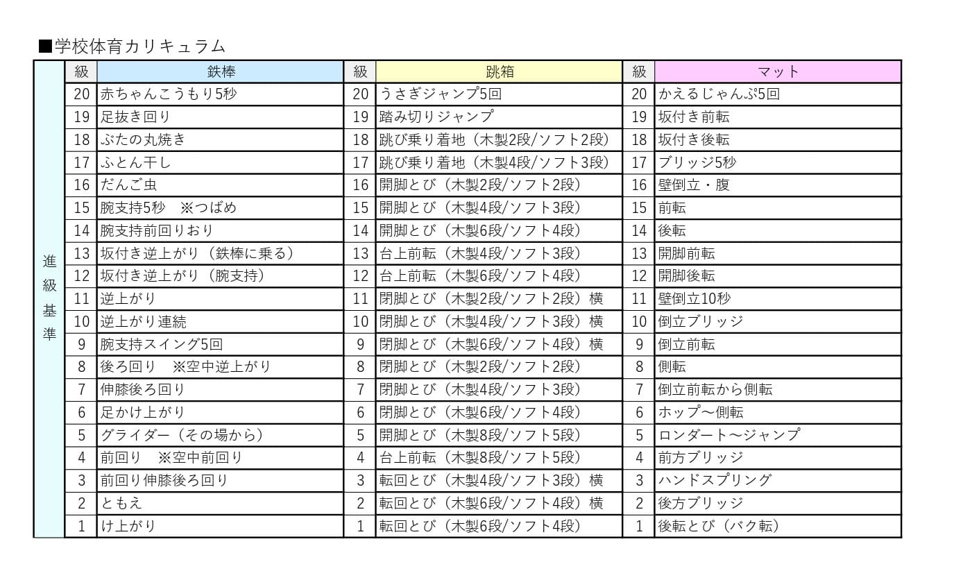 2026年1月より学校体育教室に20級制のカリキュラムを導入いたします。