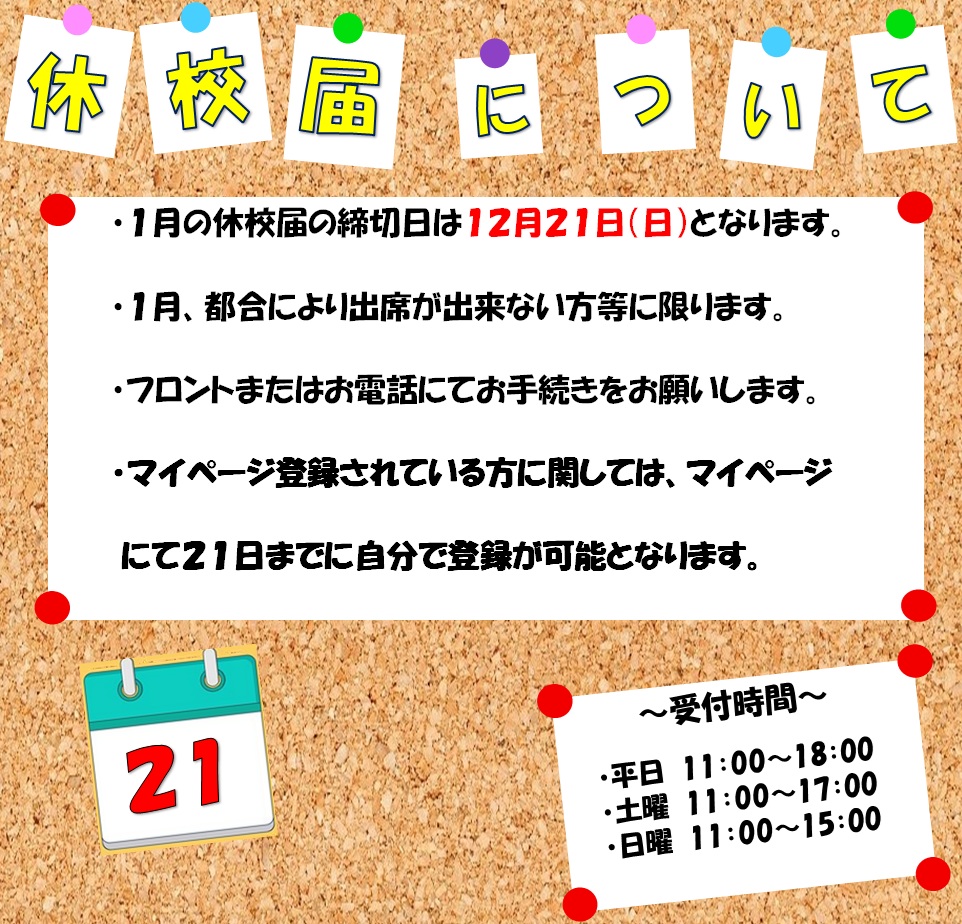 【★2026年1月休校届について★】