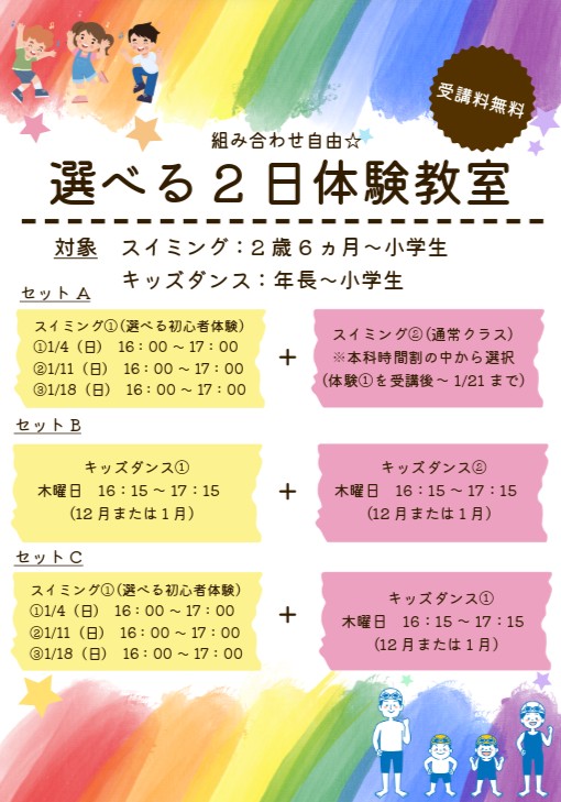 スイミング①は選べる初心者体験から1日お選びください。