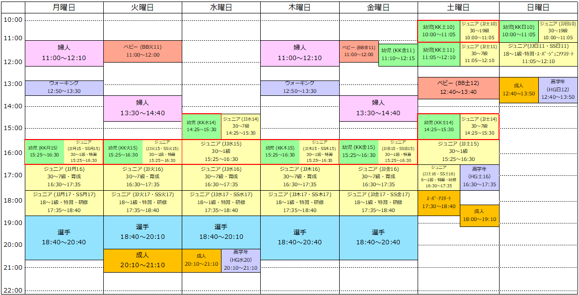 ジュニア→JJ 幼児→KK ベビー→BB 特習→SS 高学年→HG