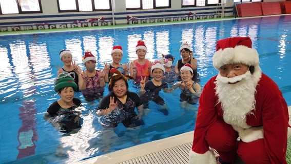 アクアウォーキングクラスにサンタさんが遊びに来ました(^^)/