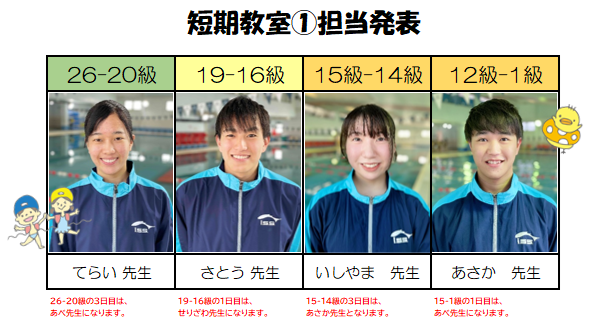 短期教室の担当が決まりましたので、発表いたします。