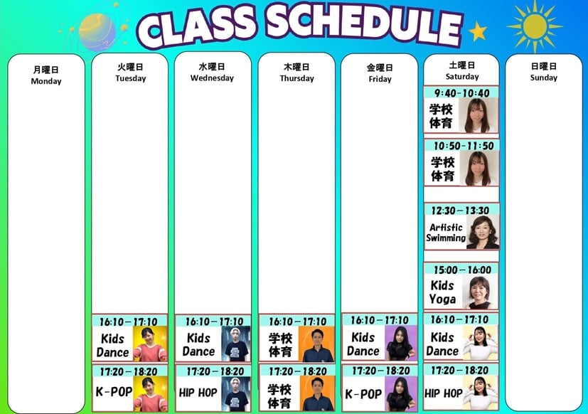 新しいことに挑戦!!【キッズスクール】タイムテーブル♬