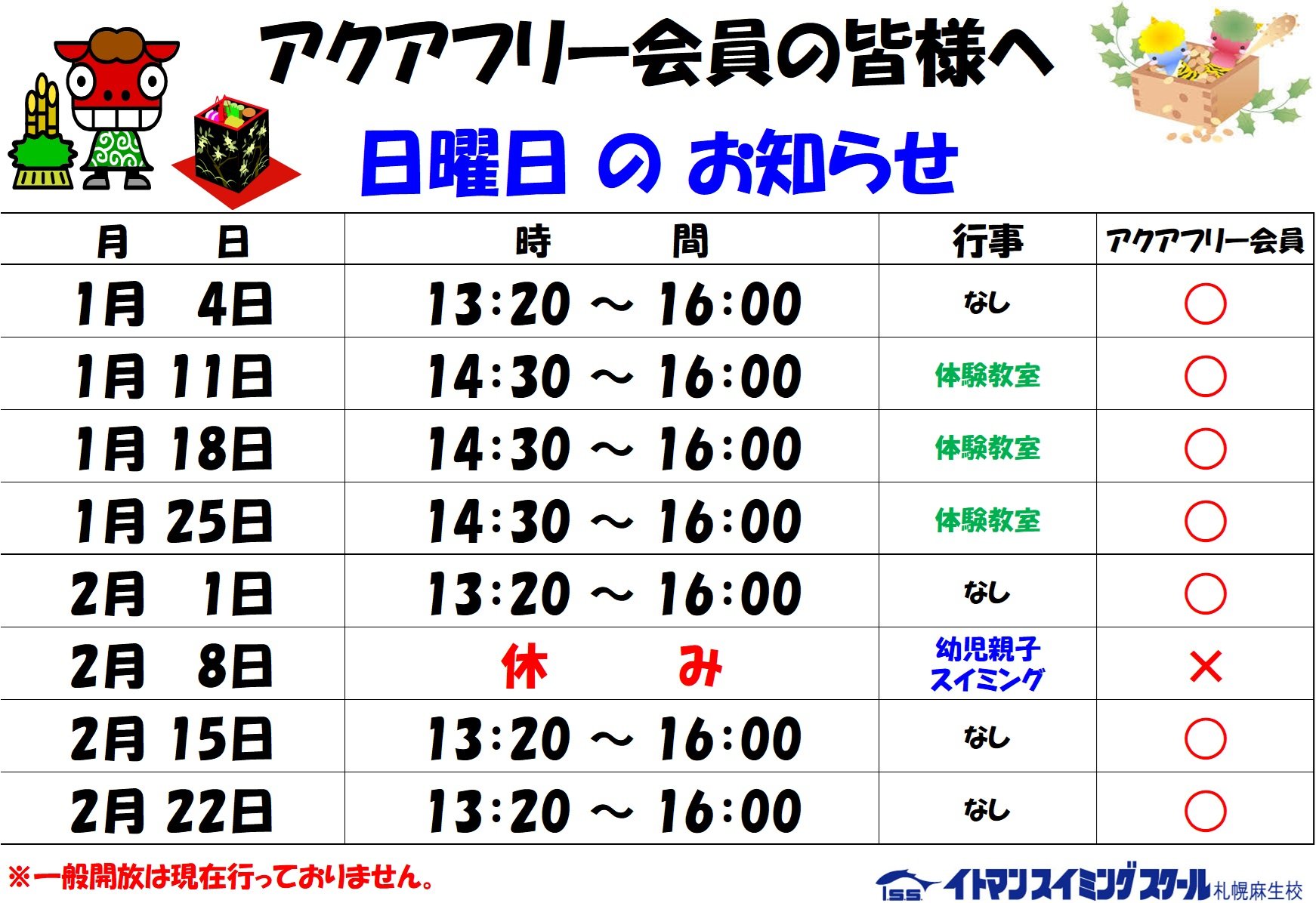 【日曜日のお知らせ】