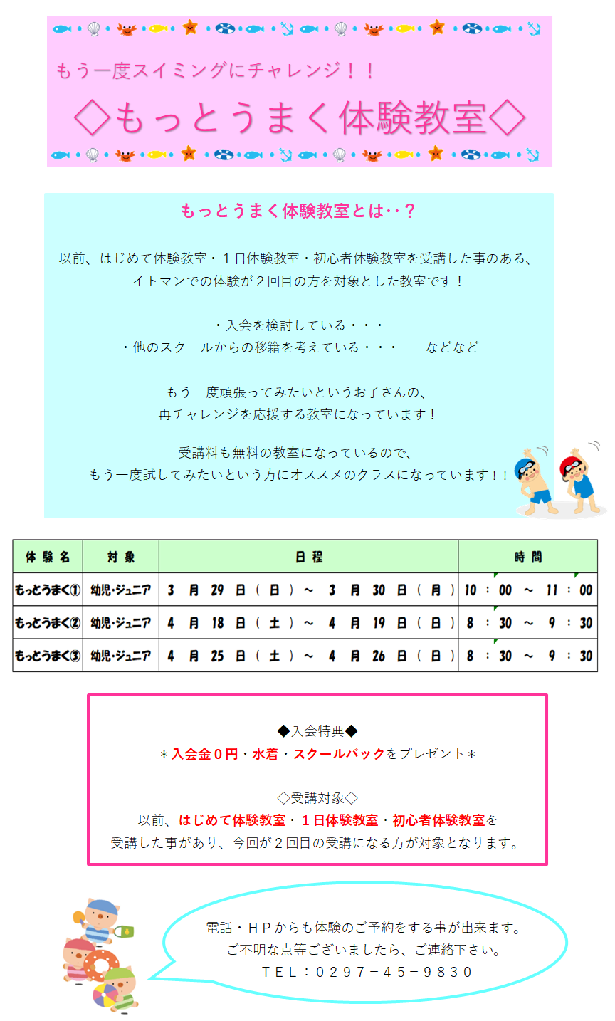 もう一度イトマンの授業を体験希望の方★ ~もっとうまく体験教室日程ご案内~