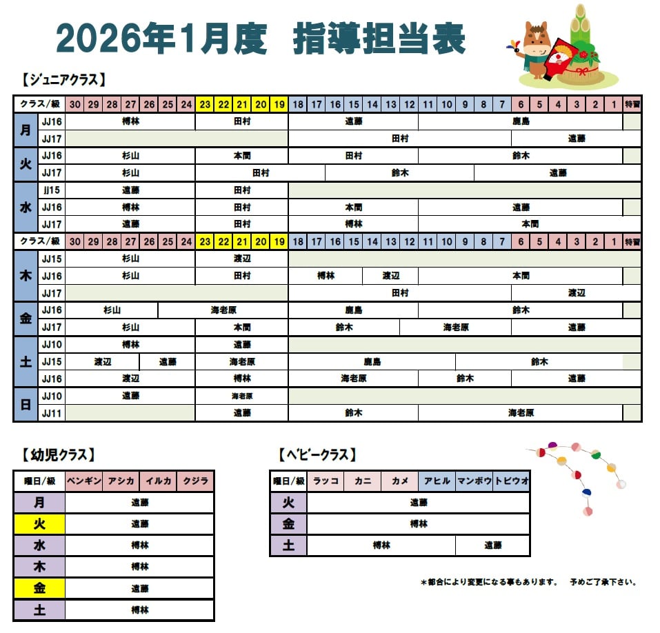 【 1月度 指導担当表 】