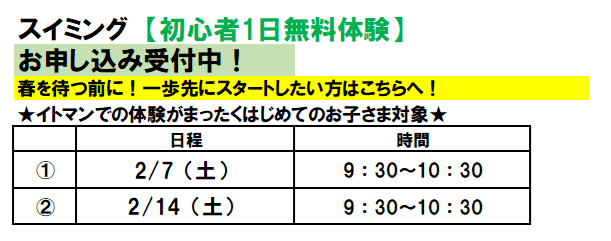 ※イトマンでの体験がはじめての方対象です