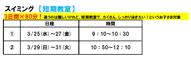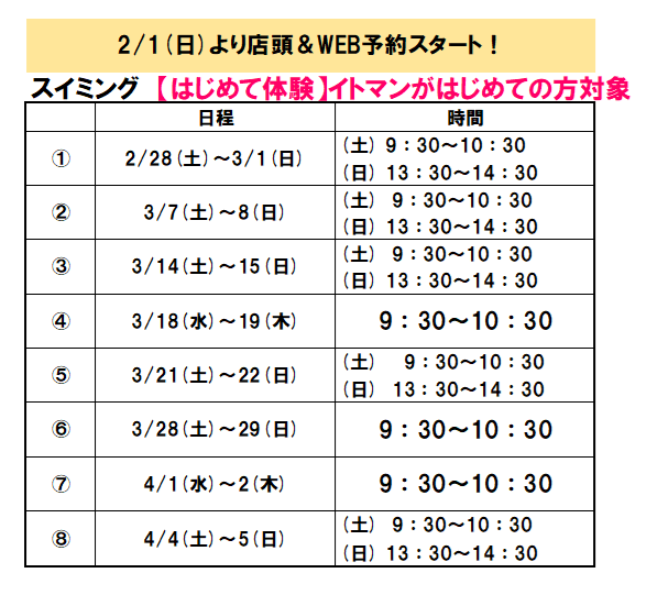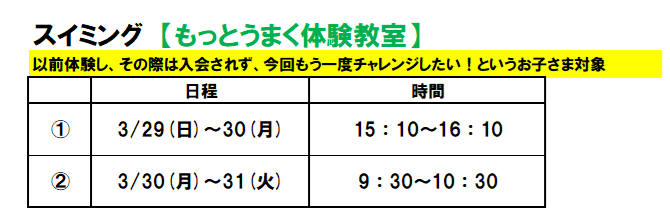 2026年スイミングの春休みイベントの日時決定!!