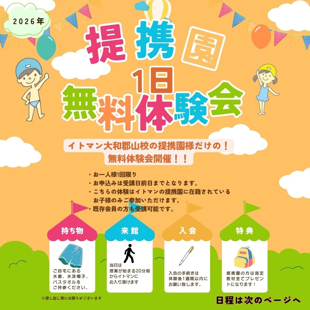 イトマン大和郡山校と提携を結んでいる提携園様向けに、無料体験教室を開催いたします!