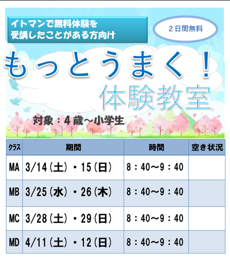 「他のスクールに通ってるけどイトマンを体験してみたい」