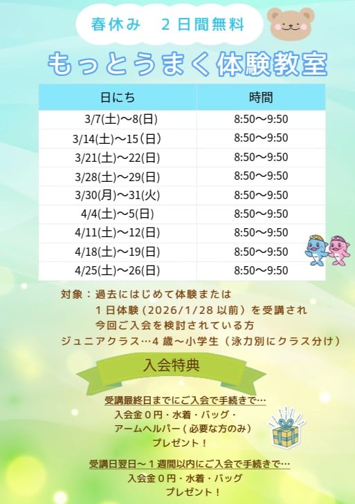 【2/1~申込受付開始】春のもっとうまく体験教室