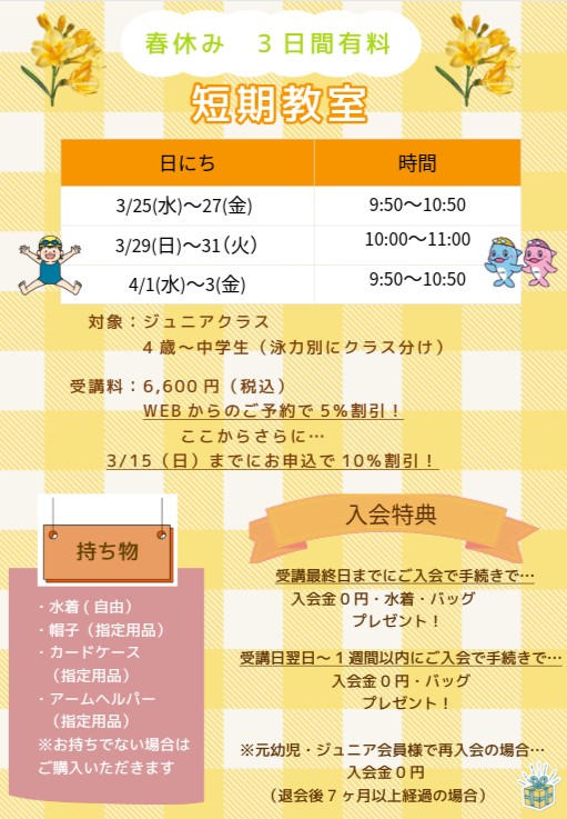 【2/1~ご予約受付開始】春の短期教室
