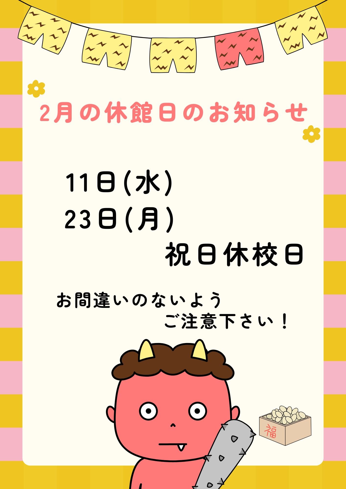 2月の休館日です。