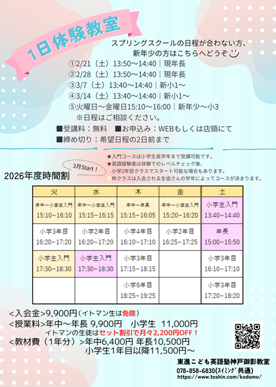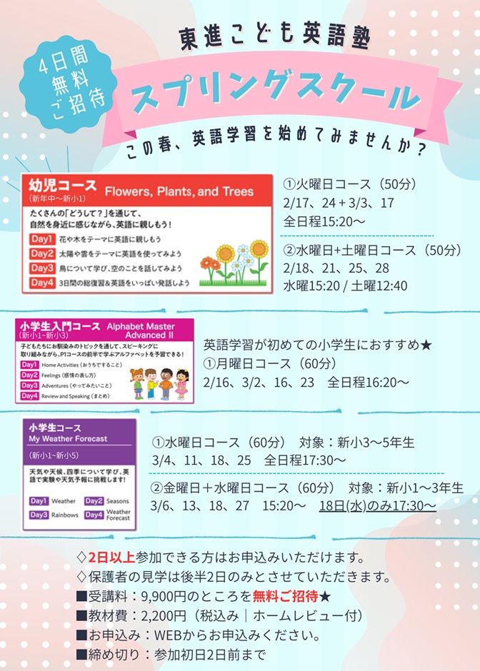 【東進こども英語塾】スプリングスクール&新年度入会受付開始!