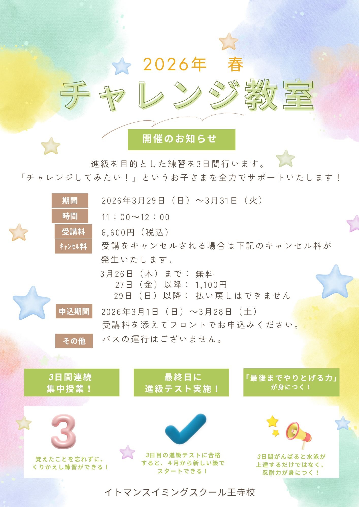 【ジュニア会員対象】チャレンジ教室のおしらせ
