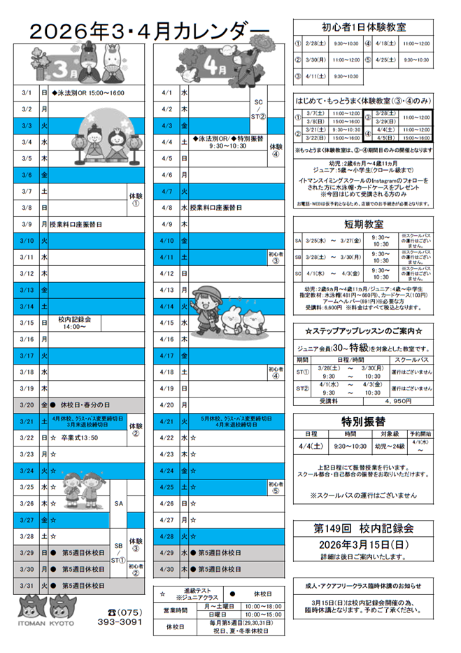 2026年3月・4月カレンダー ベビー