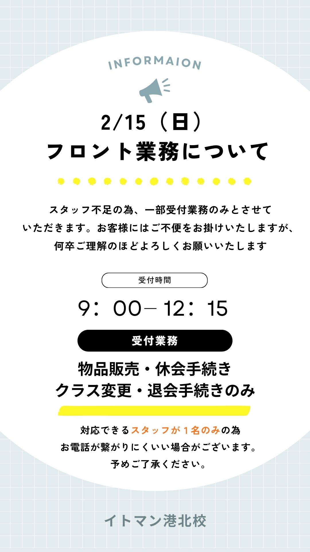 2/15(日)フロント受付について