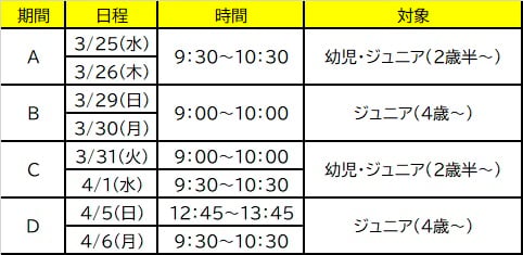 | 初心者一日体験教室 | イトマンはじめての方限定、春の特別土日枠の体験教室 |