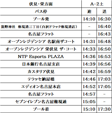 1号車 土曜日15:20~16:20対応 【伏見・栄路線】
