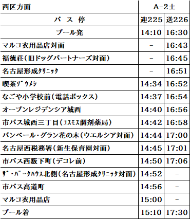 2号車 土曜日15:20~16:20対応 【西区路線】