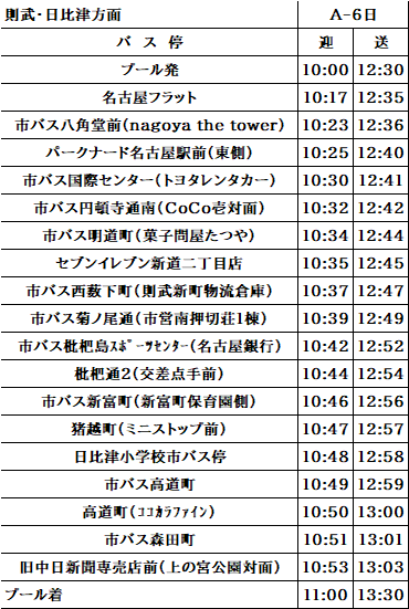 1号車 日曜日11:20~12:20対応 【則武・日比津路線】