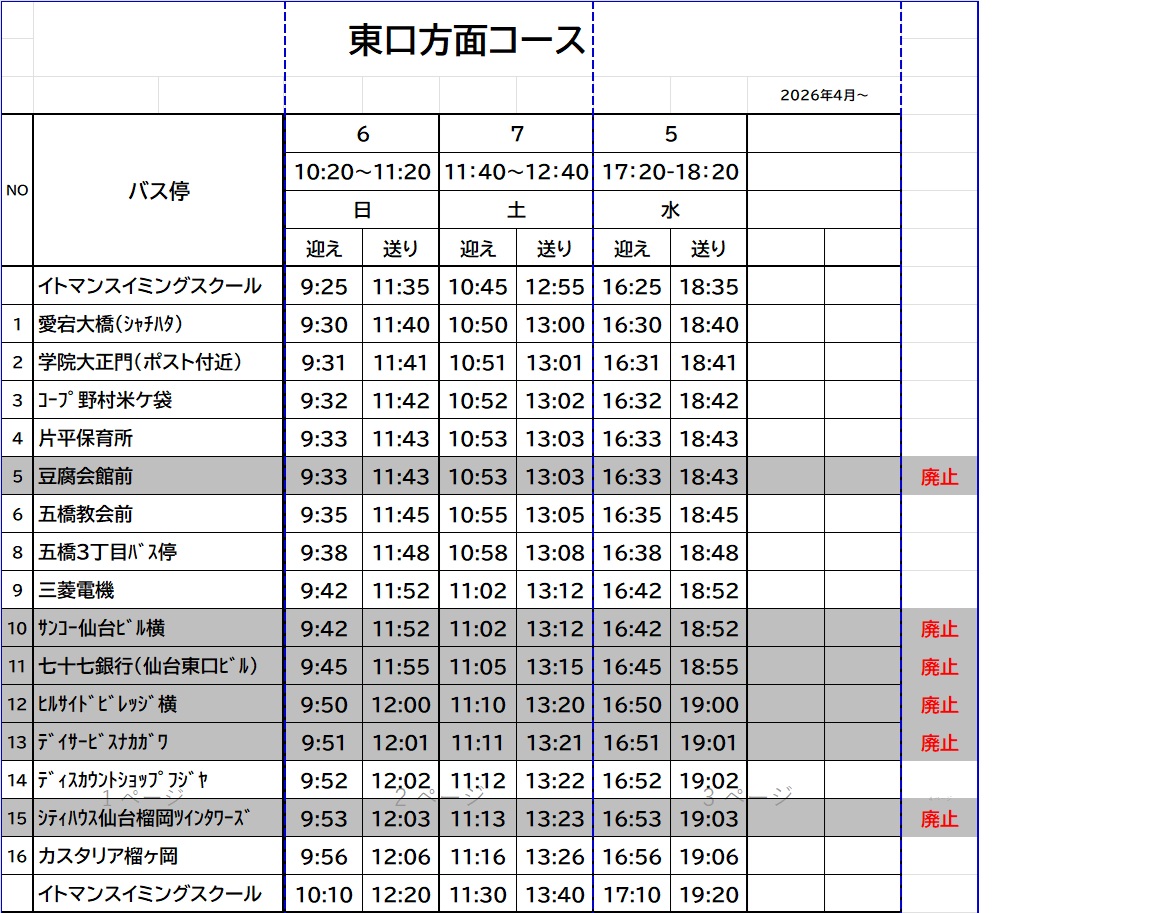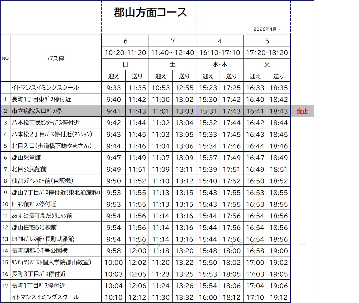 2026年4月より各コース利用者がいない停留所の廃止をいたします。