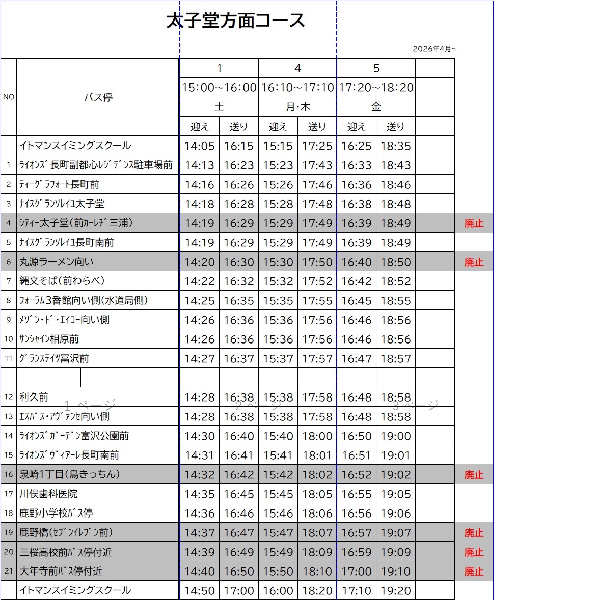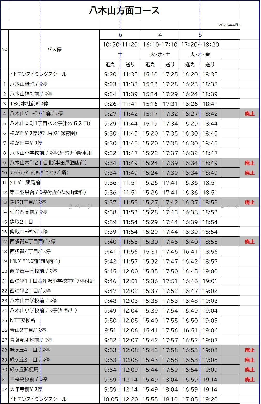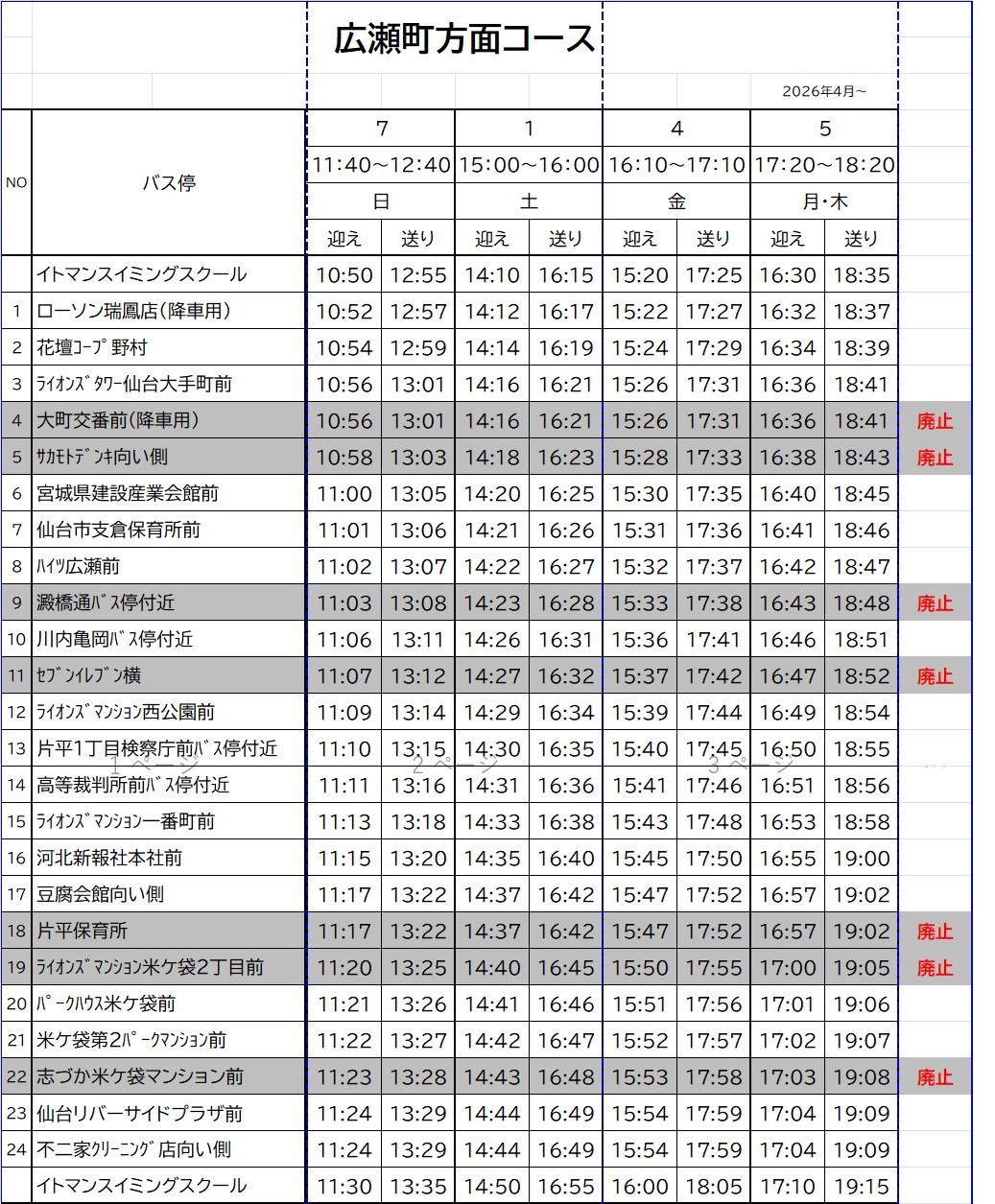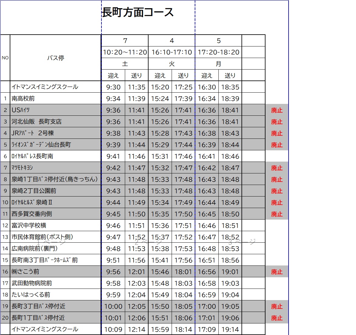 廃止停留所は下記バスコースの時刻表をご確認ください。