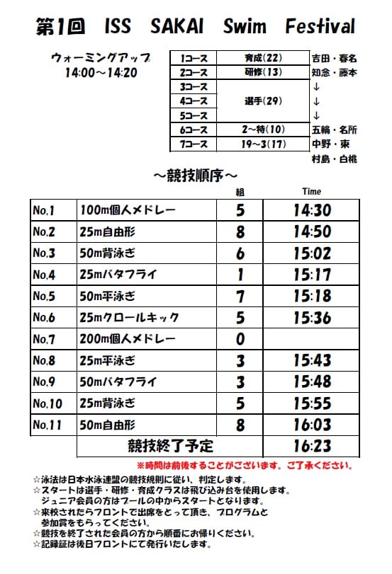 SAKAI Swim Festival のタイムテーブルです★