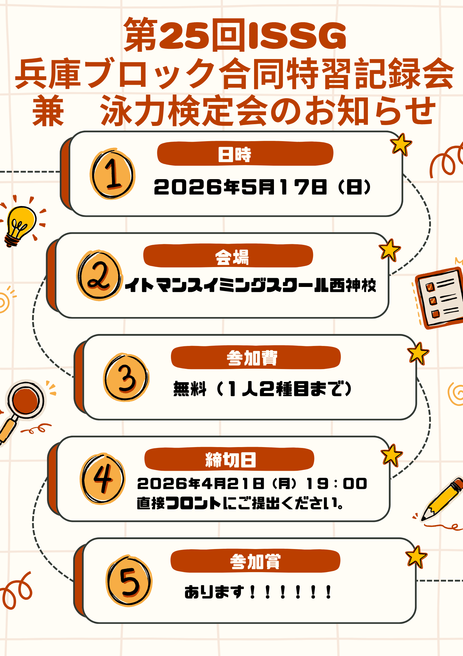 第25回ISSG兵庫ブロック合同特習記録会兼泳力検定会のお知らせ