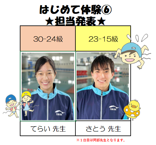 はじめて体験教室⑥の担当が決まりましたので