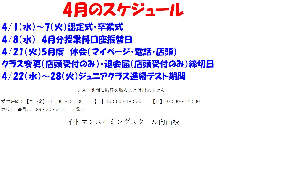 4月のスケジュール