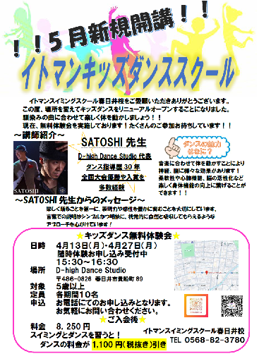 イトマンキッズダンススクールの無料体験会申し込み受付中です!