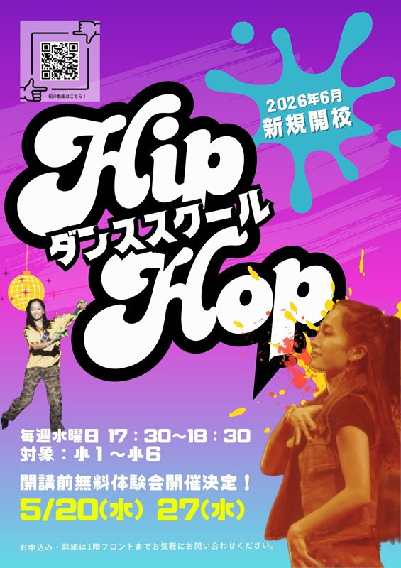 6月より(水)17:30~18:30 HIP HOPダンスクラスが新規開講!