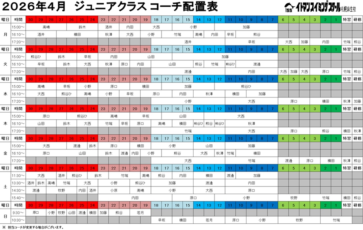 【ジュニアクラス担当表4月】
