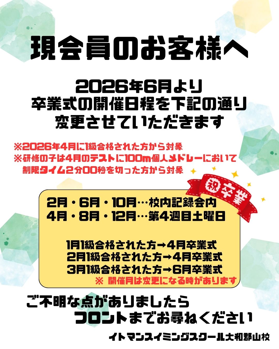 研修の子は、2026年4月のテストで100m個人メドレーにおいて制限タイム2分00秒を切った方から対象となります。