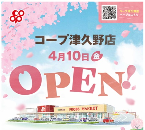 2026年4/10(金)にコープ津久野店がオープンします。