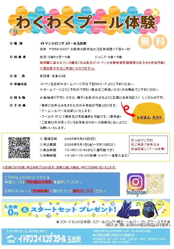 わくわくプール体験のご案内