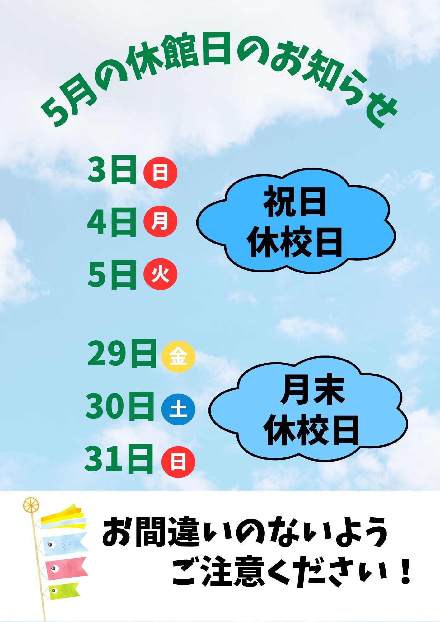 5月の休館日です。