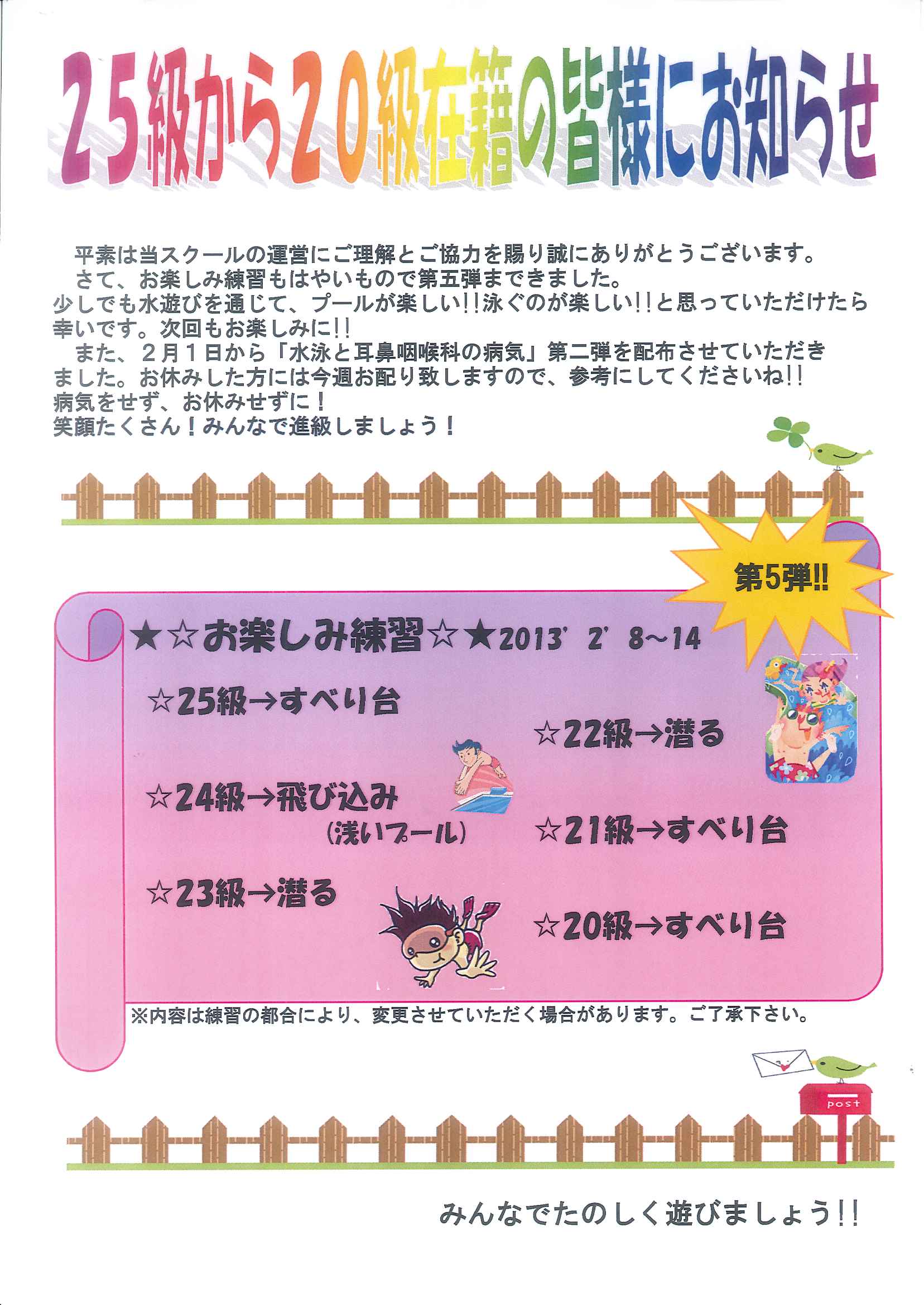25級から20級在籍の皆様にお知らせ