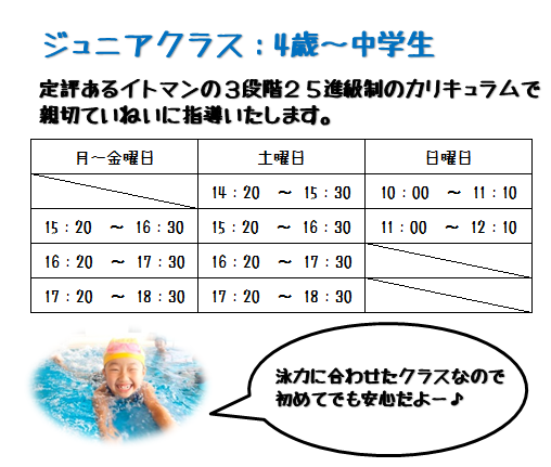 ご希望のクラスはお早めにお申込みください。
