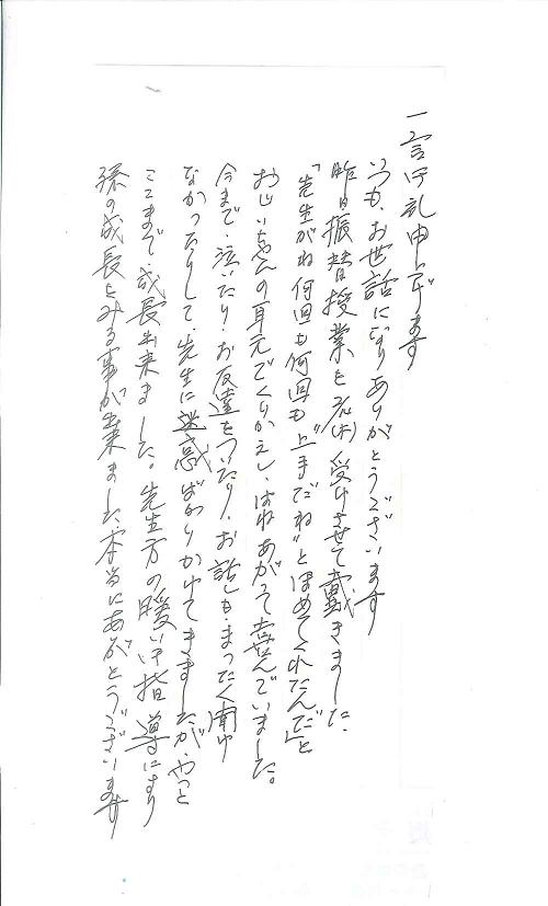 ジュニアクラス在籍の保護者の方より