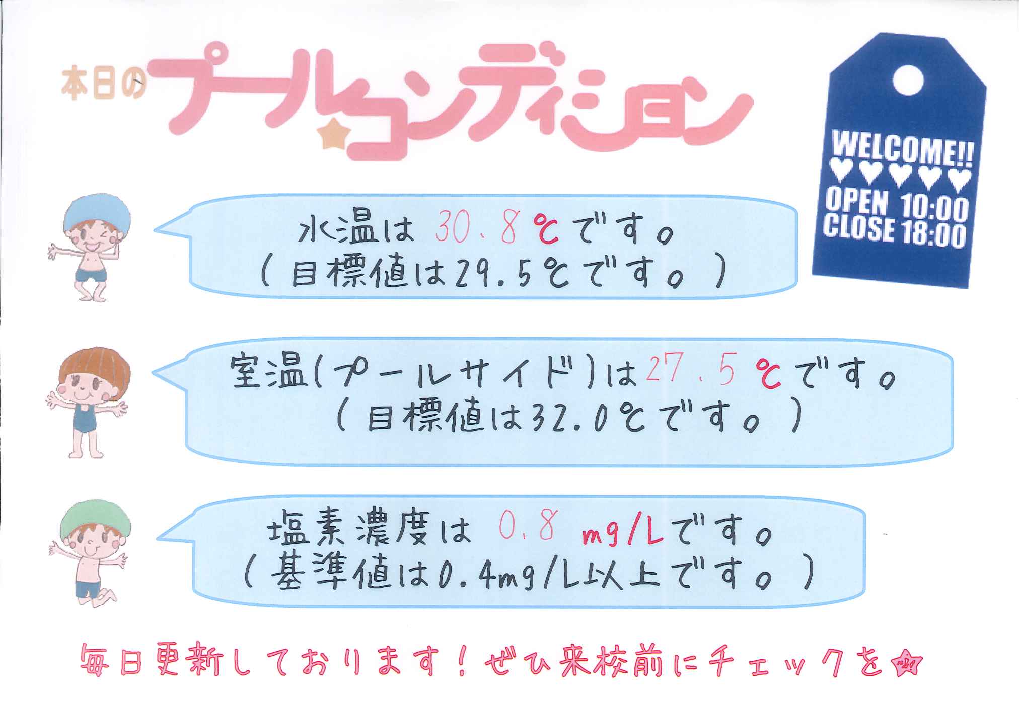 本日のプールコンディション@9時現在