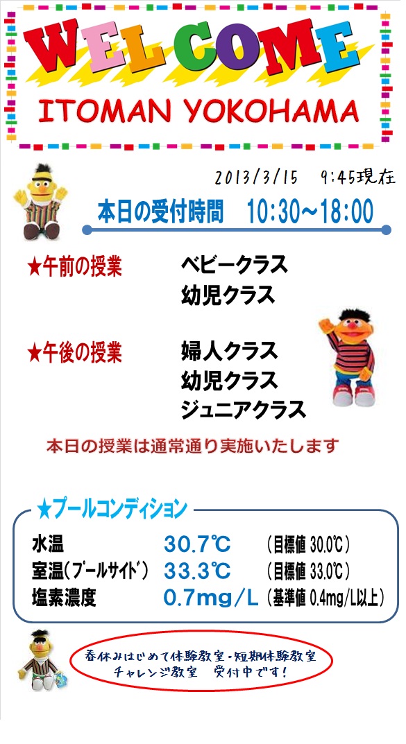 本日の営業情報【2013.3.15】