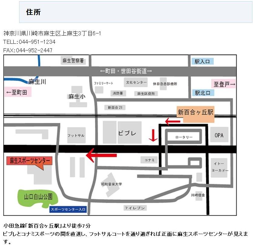 場所 麻生スポーツセンター 大体育館 新百合ヶ丘駅より徒歩7分