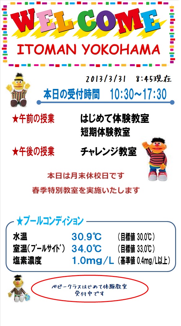 本日の営業情報【2013.3.31】