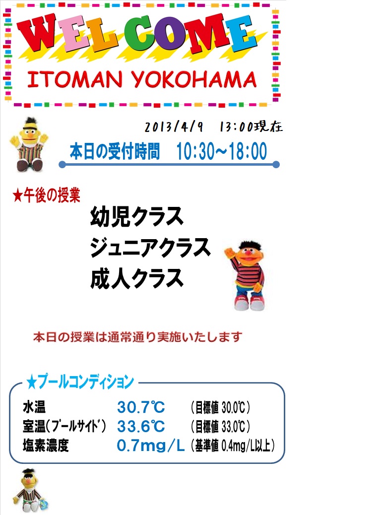 本日の営業情報【2013.4.9 PM】