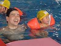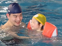 いつもは一緒に入れないお父さんと楽しく遊びました