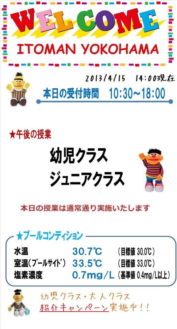 本日の営業状況【2013.4.15 PM】